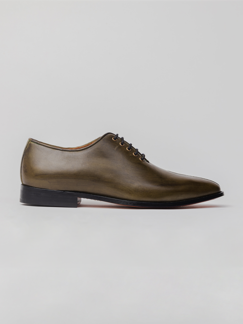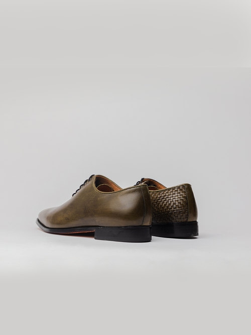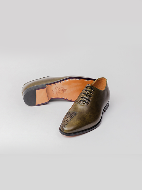 This handcrafted, Woven & Plain Leather Oxford - Olive,made in calf skin leather, Stacked Leather Heel , Handmade Argentinean Leather sole along with fully lined Tan leather, stitch via the Blake stitched method for enhanced flexibility.