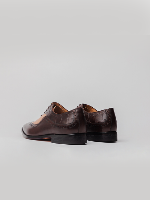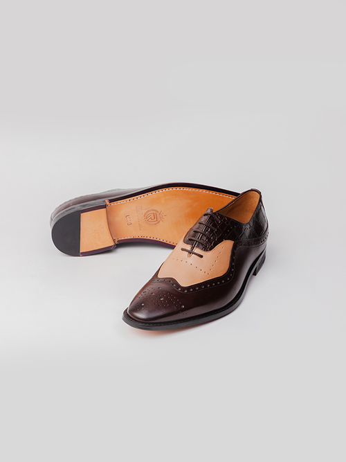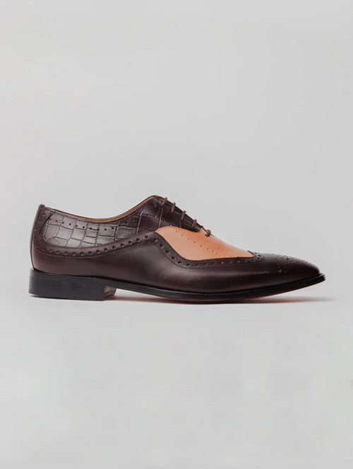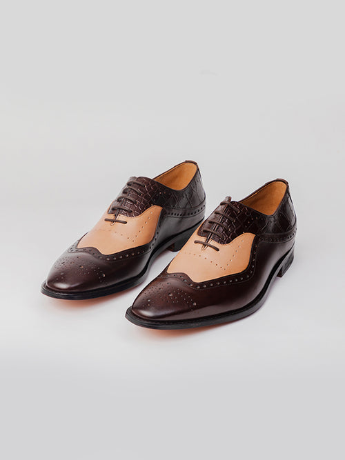 This handcrafted,Twin Color Combination Oxford - Tan/Brown ,made in leather, Stacked Leather Heel , Handmade Argentinean Leather sole along with fully lined Tan leather, stitch via the Blake stitched method for enhanced flexibility.