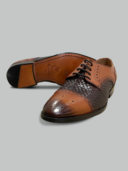 This handcrafted, Denver Woven Derby -Brown features Plain Toe-Cap, Woven Vamp,made in calf skin leather which is made to order in 4-5 weeks time, Stacked Leather Heel , Handmade Argentinean Leather sole along with fully lined Tan leather, stitch via the Blake stitched method for enhanced flexibility.