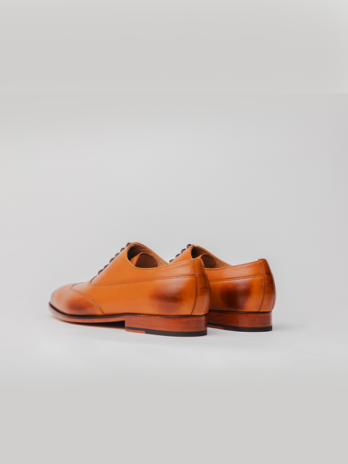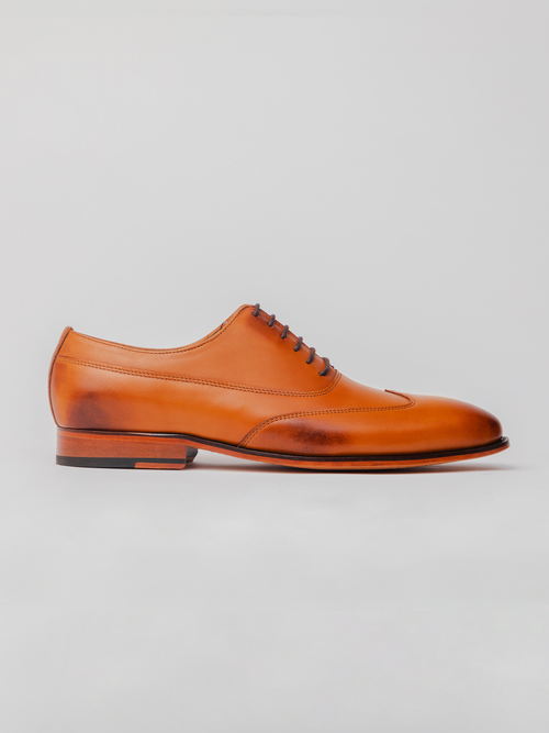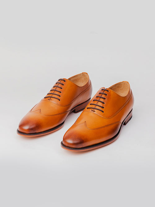 This handcrafted,Hamilton Oxford - Tan ,made in calf skin leather , Stacked Leather Heel , Handmade Argentinean Leather sole along with fully lined Tan leather, stitch via the Blake stitched method for enhanced flexibility.