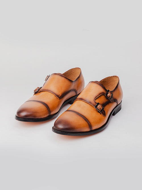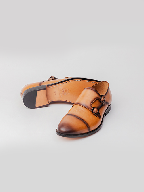 Shubhan Double Monk - Camel Patina  loafer shoes