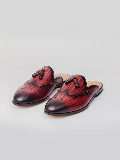 Seira Tassels Mules - Oxblood Patina loafer shoes