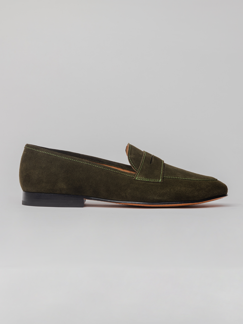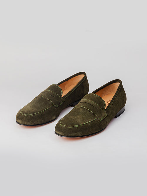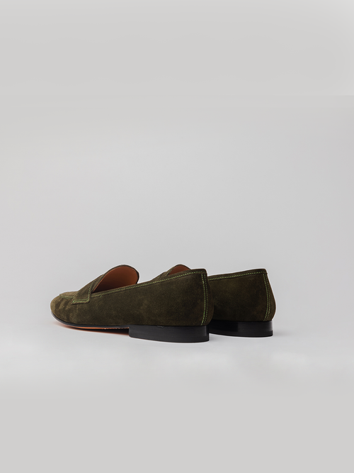 San- Penny- Loafer - Olive- Suede- loafer- shoes